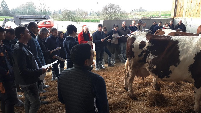 La visite de l’Earl Chaudet l’après-midi, a été l’occasion de mettre en avant les vaches que l’éleveur apprécie tout particulièrement, avec Epice en 7e lactation (fille de Redon), qui a une fille intéressante qui se nomme Inédite (fille d’URBANISTE). Cette dernière a produit deux très bonnes génisses en ISU, et elle est intégrée dans le cadre du schéma UMOTEST.