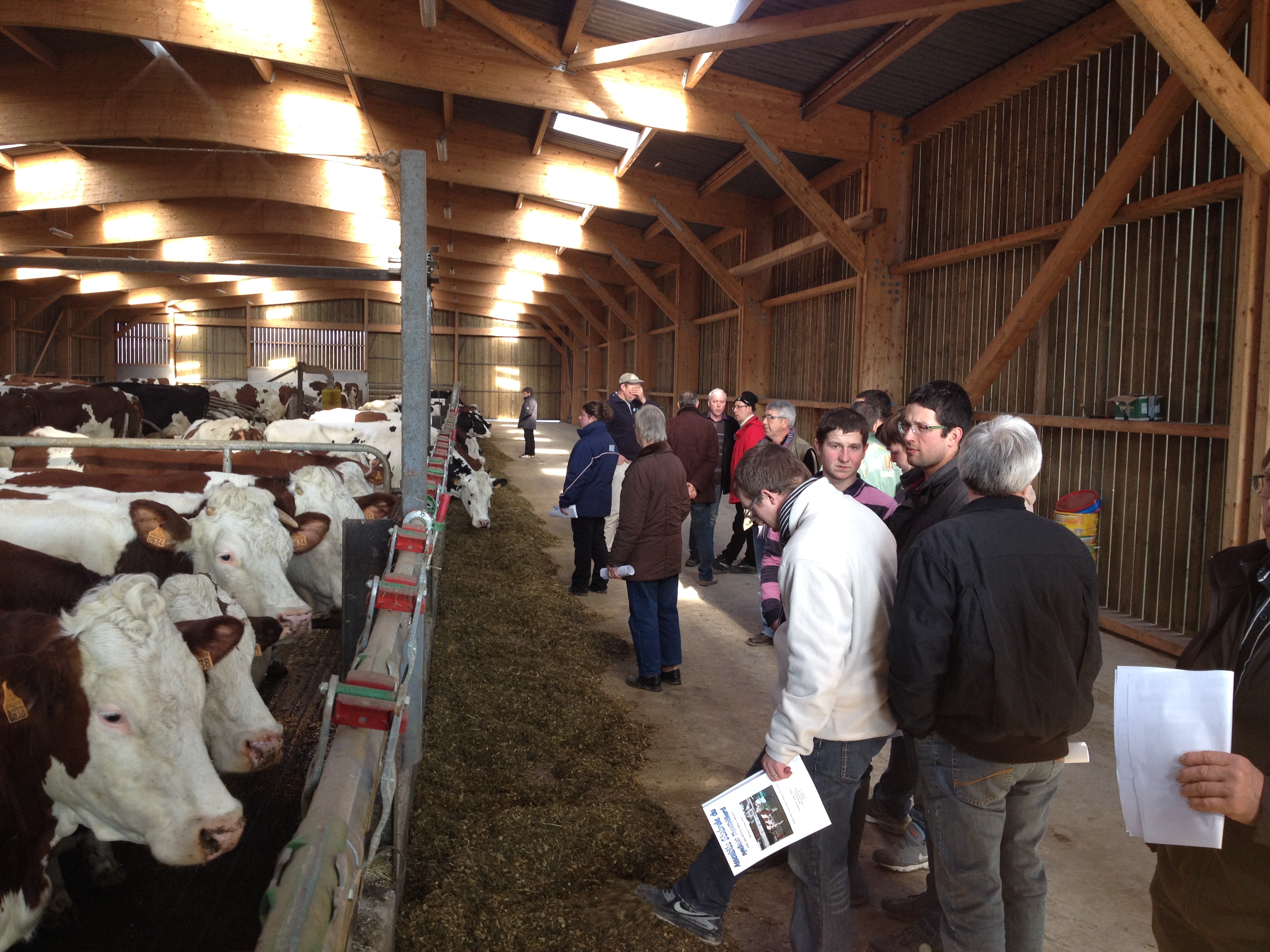 La visite au GAEC des Petits Près chez Daniel et Hervé FRANCOIS et David FRISON à Gilley a permis de clôturer cette journée. Cet élevage en système lait, viande et céréales possède 80 vaches laitières pour un quota de 705 200 L de référence et 309 ha de SAU. L’occasion pour les éleveurs de nous présenter les vaches qui ont marqué son troupeau grâce à leur production et leur longévité, mais aussi de repérer une participante potentielle des miss à Eurogénétique le 10 avril prochain.