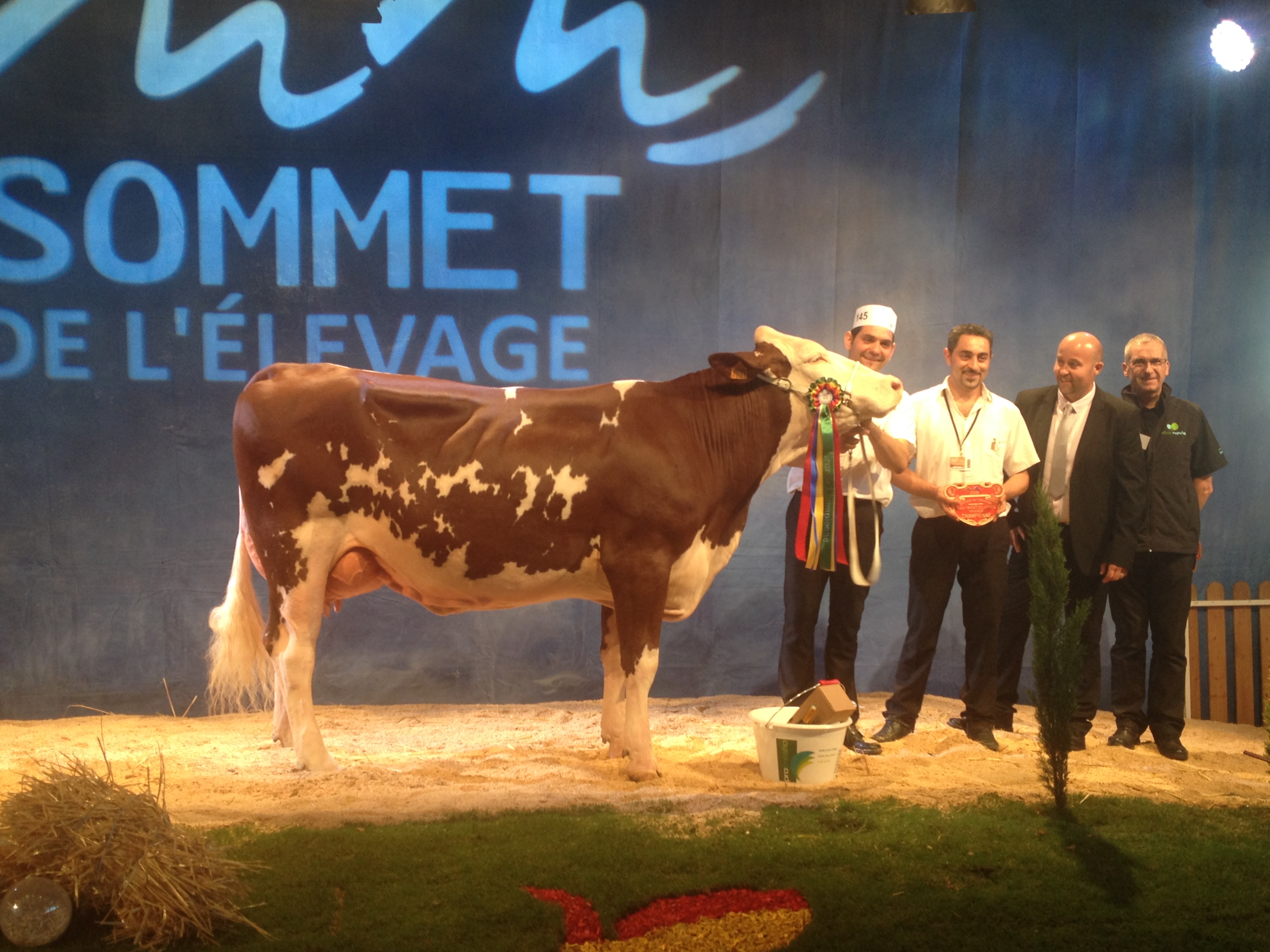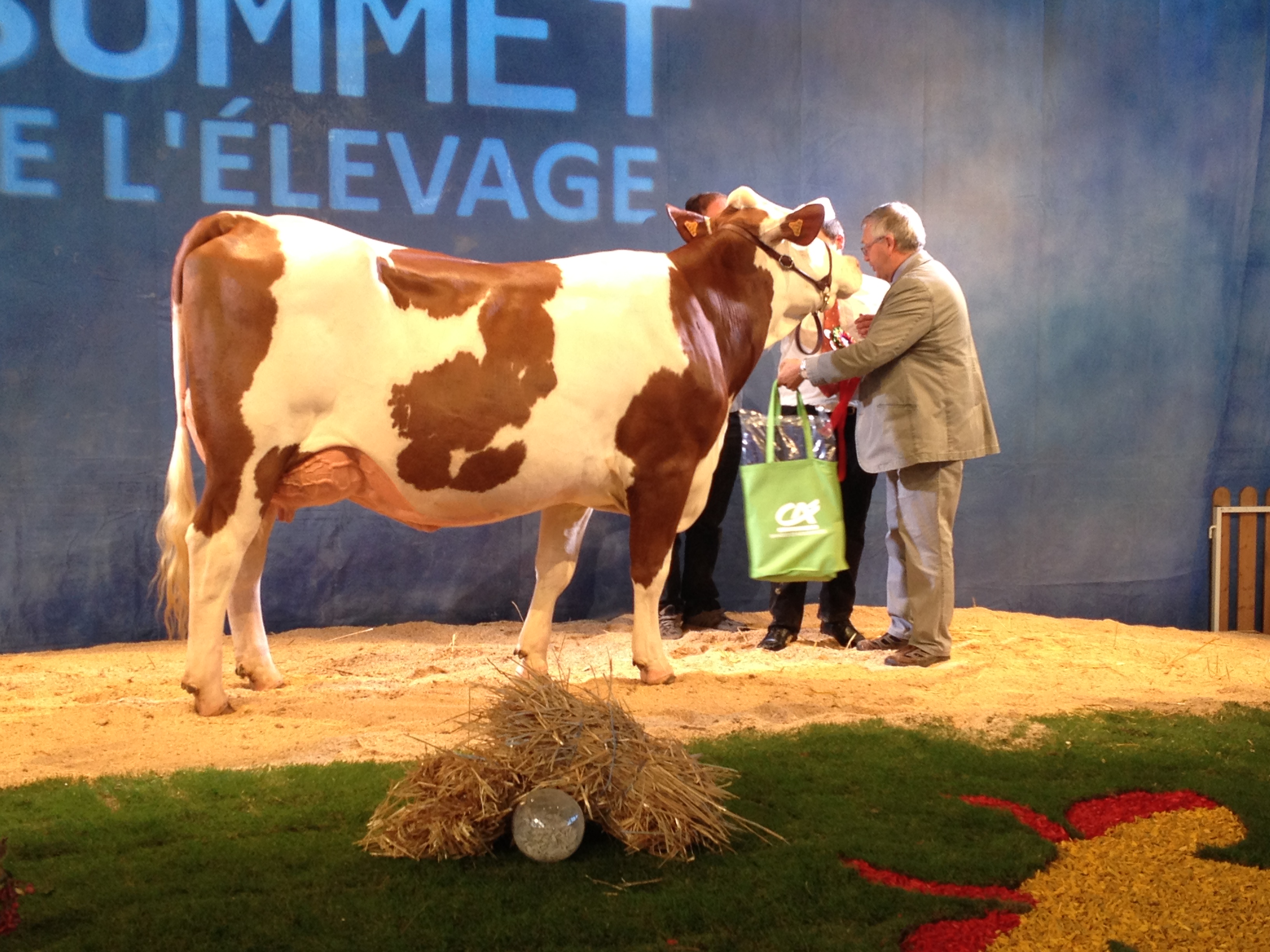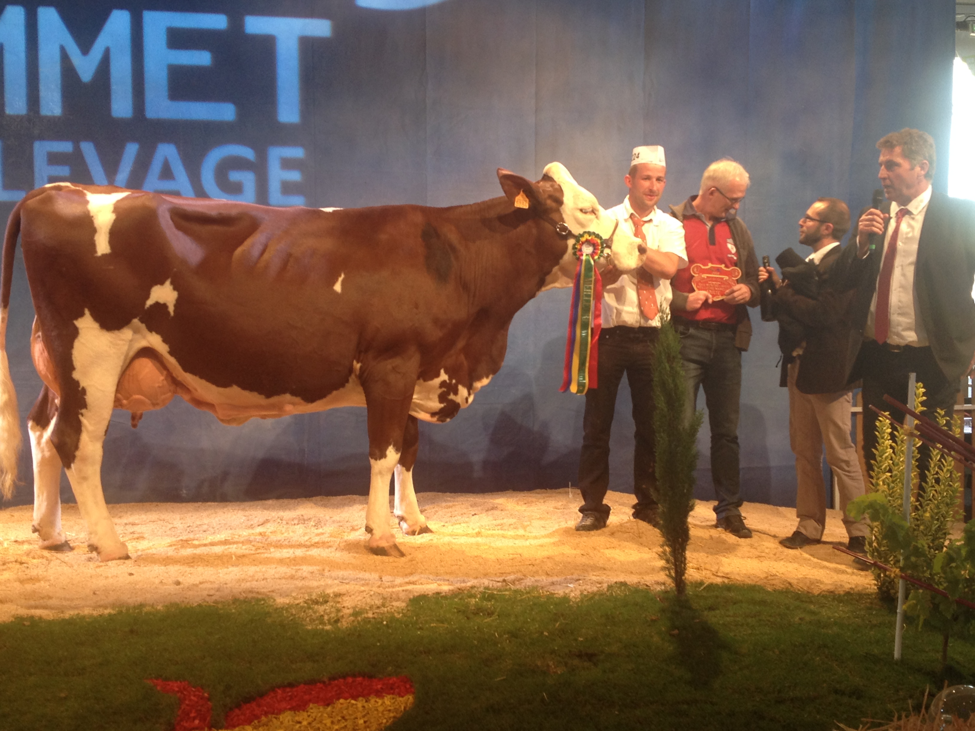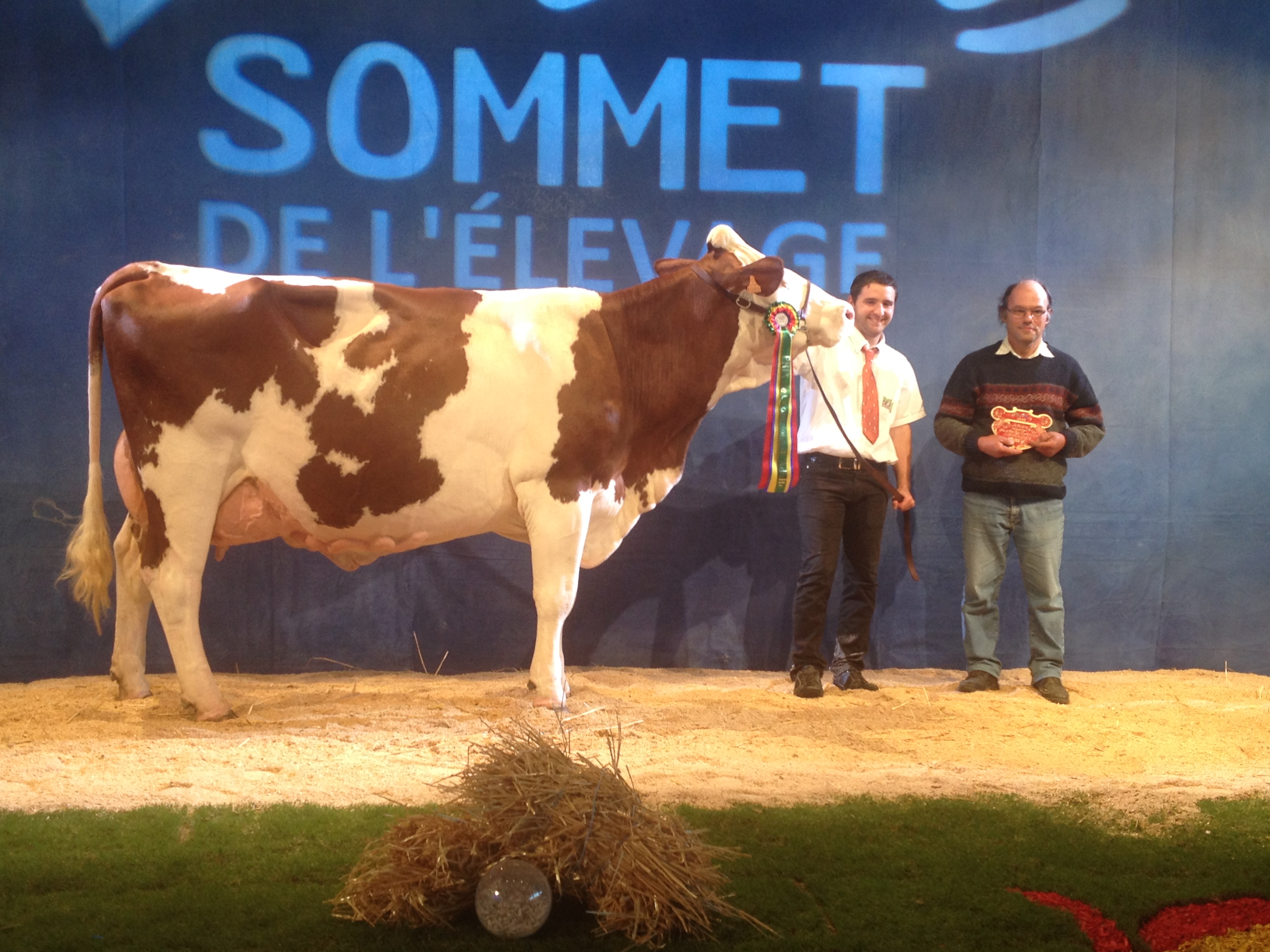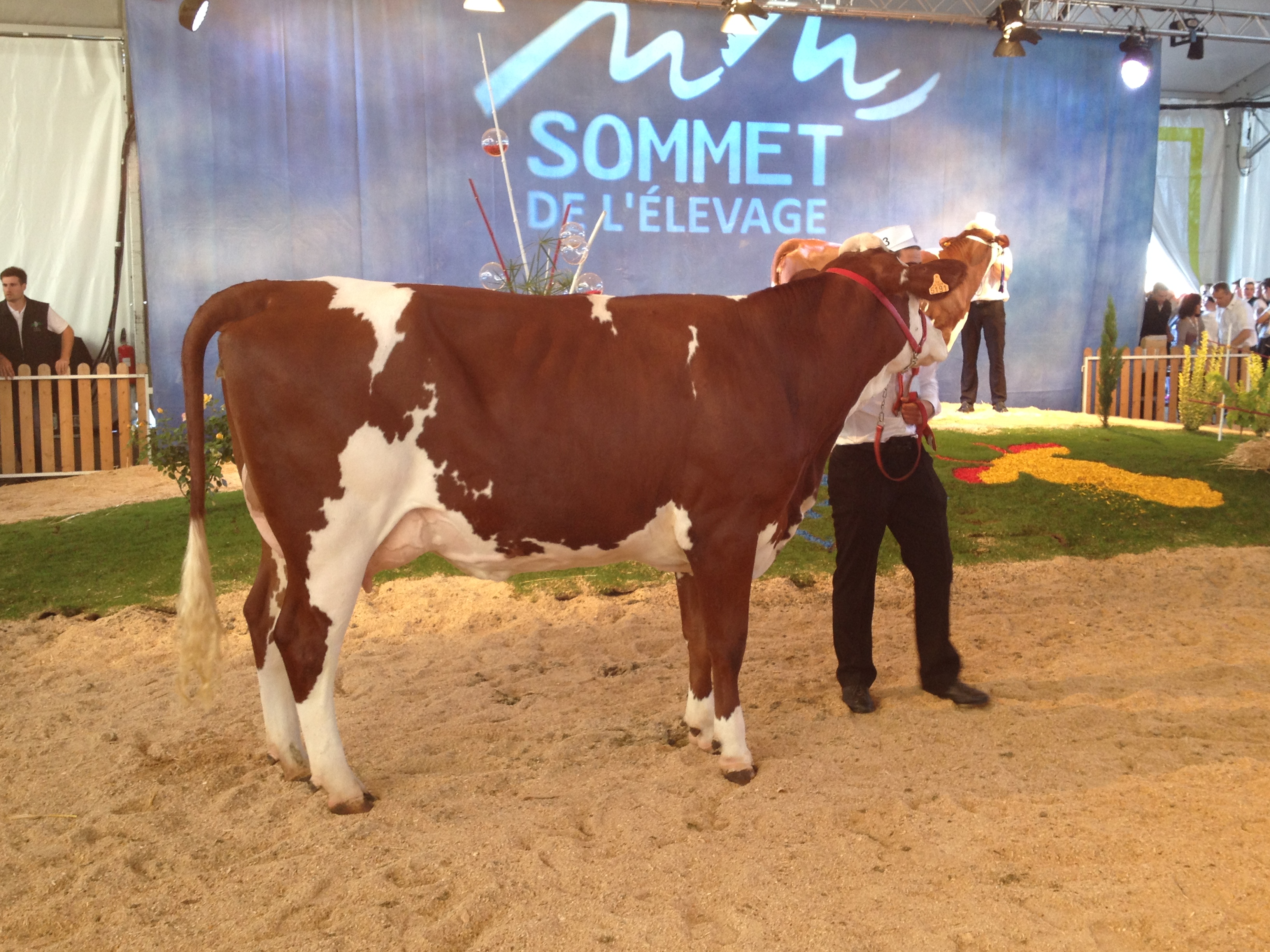14 sections ont défilé sur l’après midi, ponctuées par les prix de championnats jusqu’à l’élection de la grande championne. L’occasion de retrouver dans les allées quelques-unes de nos mères à taureaux, qui ont des fils actuellement diffusés au catalogue ! Etincelle (Ricochet/ Octet jb) chez Mr Bastide Christian (12) actuellement en 5ème lactation, a produit 40 800 kg en 4 lactations. C’est la mère de Impec (fils de Brink à 153 d’ISU, + 1105 en lait, + 1 repro, 92 nai) disponible en semence conventionnelle. Grace (Varus/Sir) de chez Alain Rouquier (15), est la mère de Labdo, fils de Horatio, disponible dans les profils TP, CO, MA et VB.