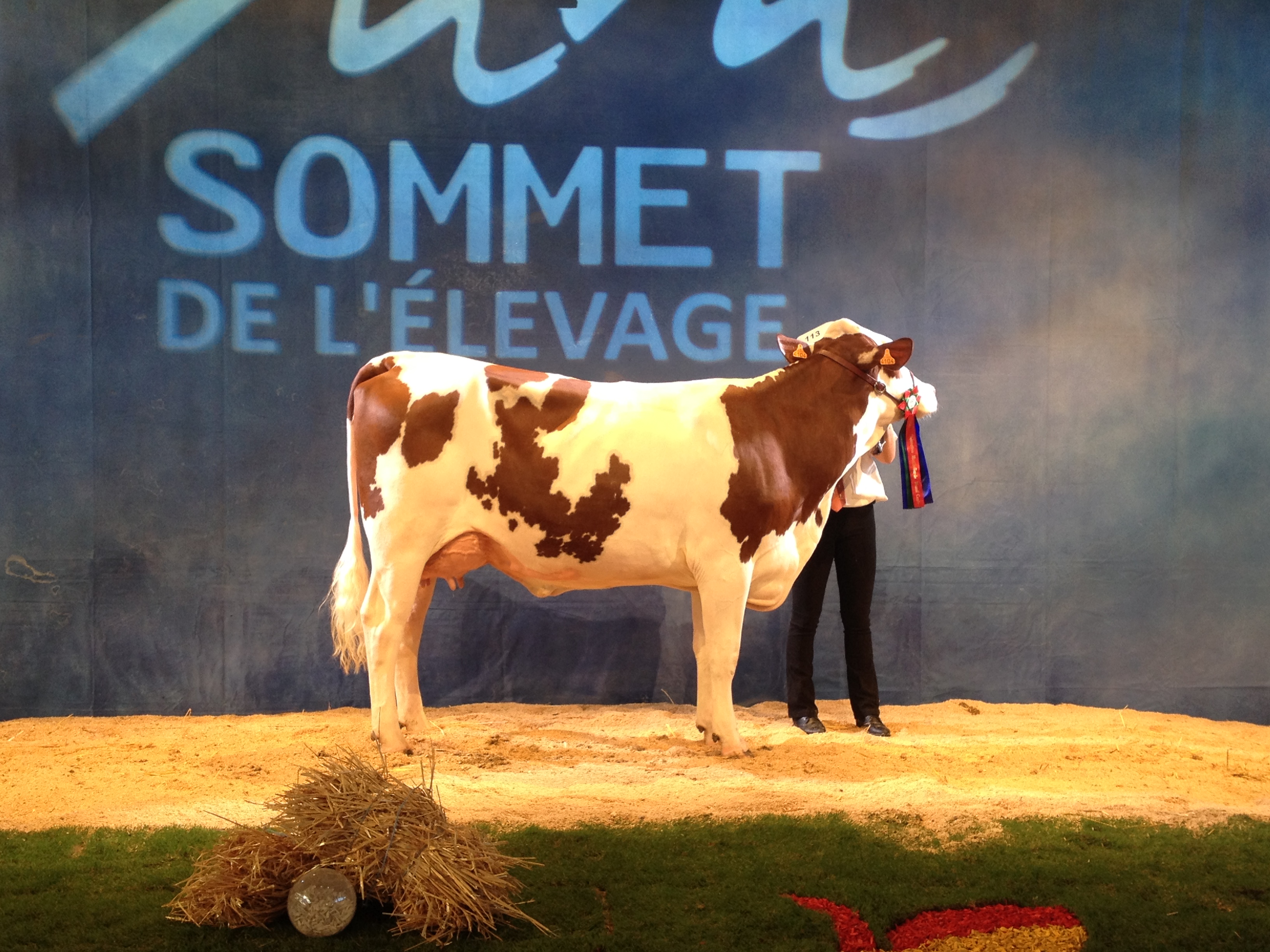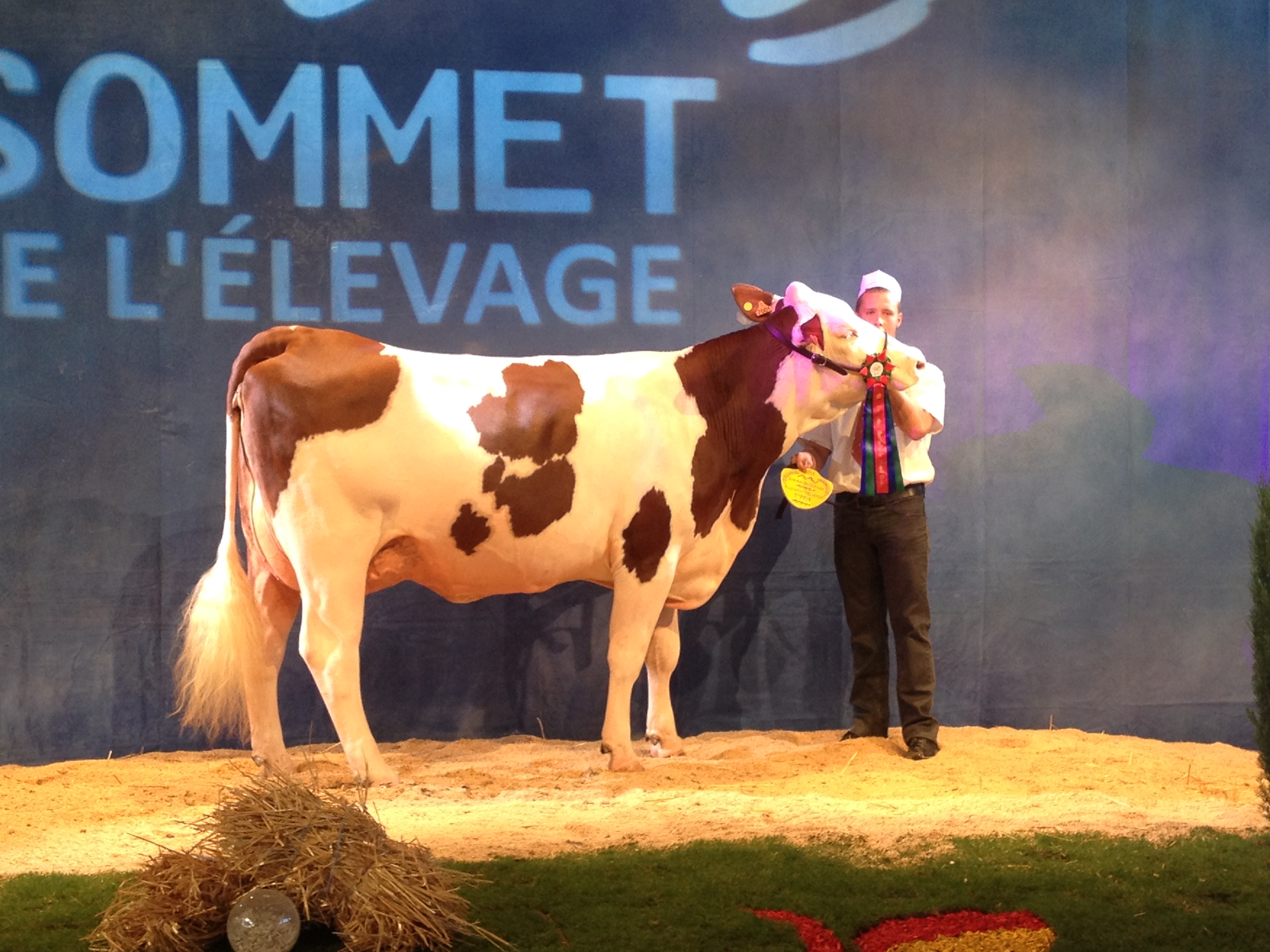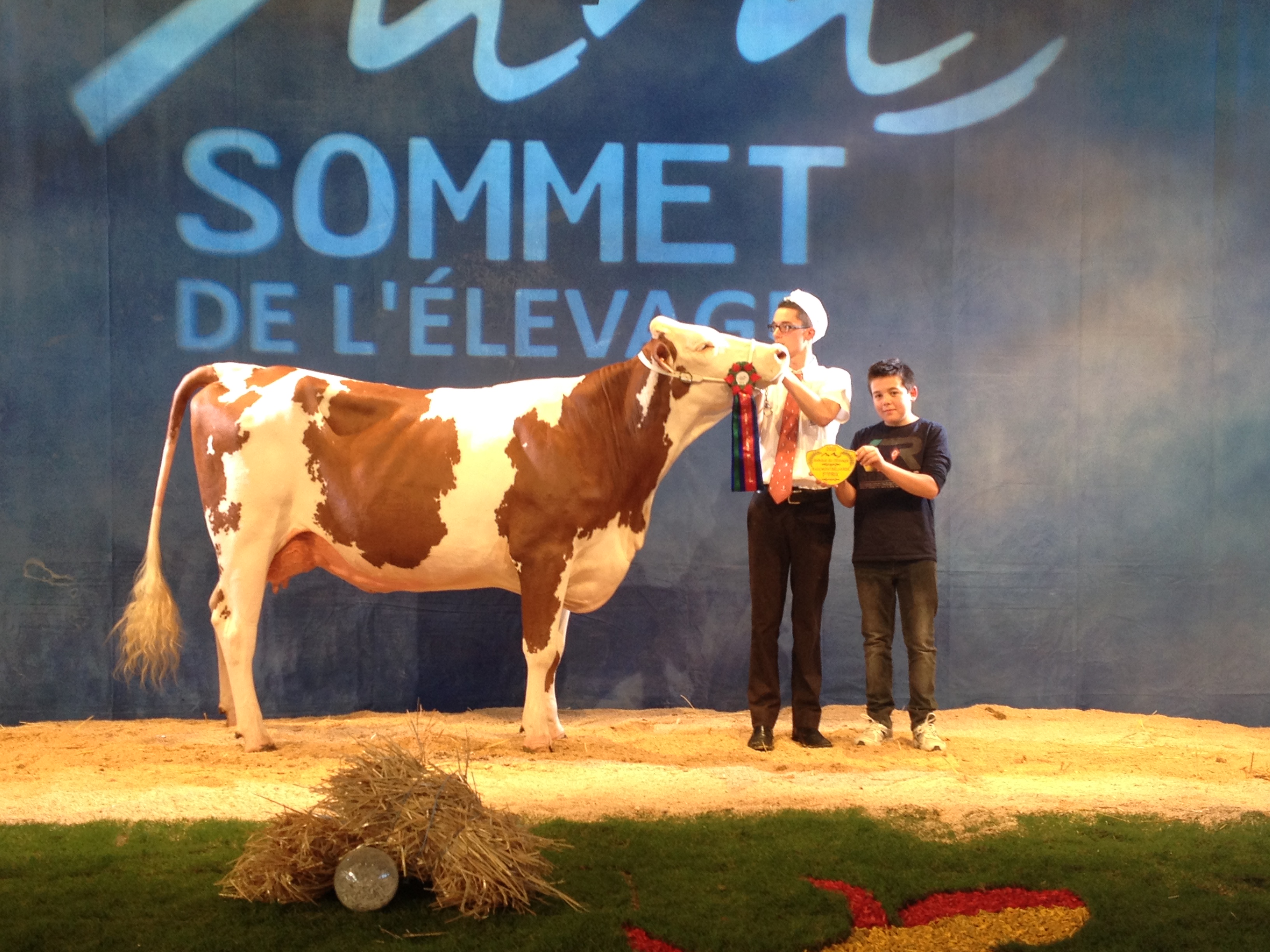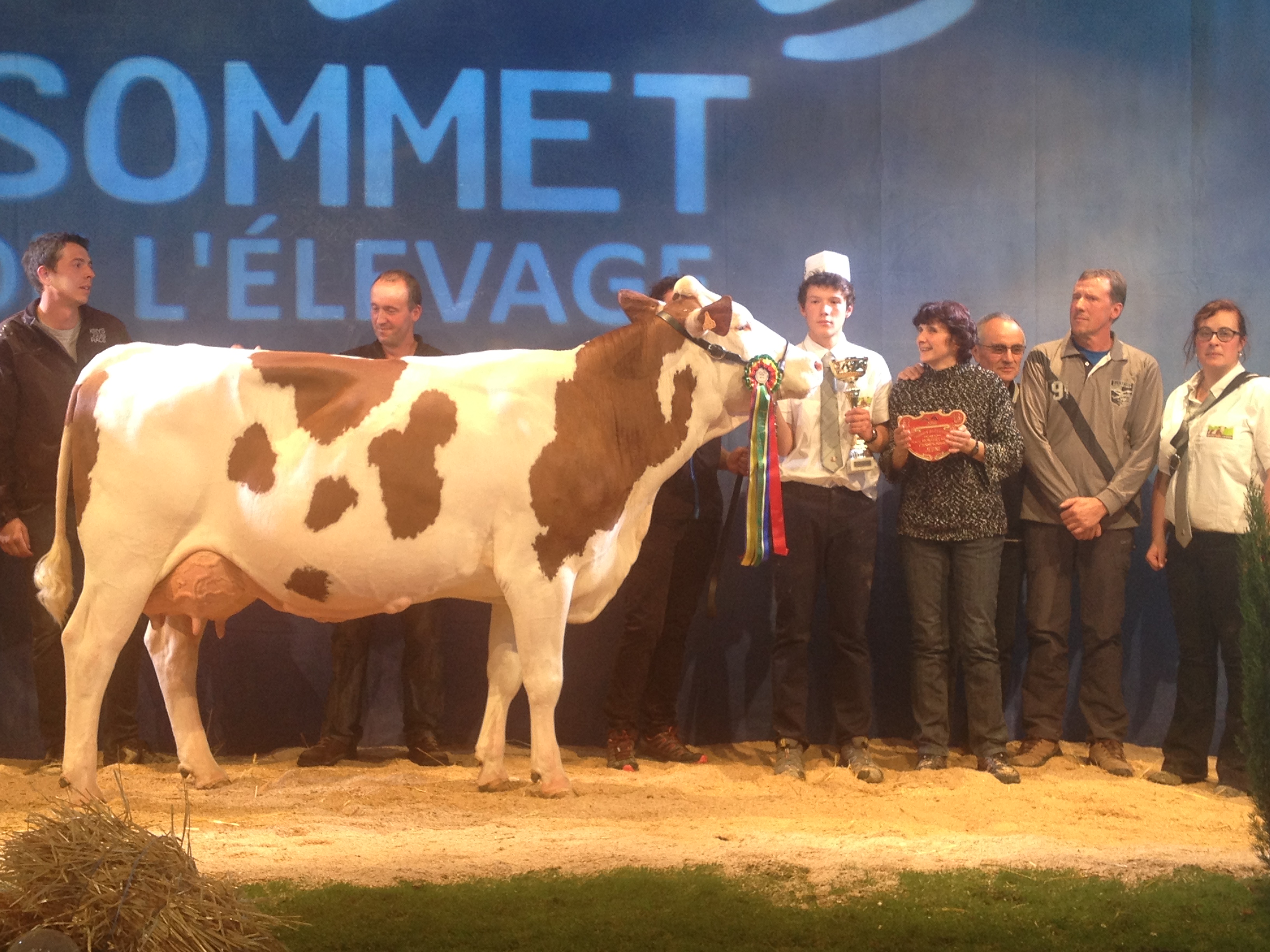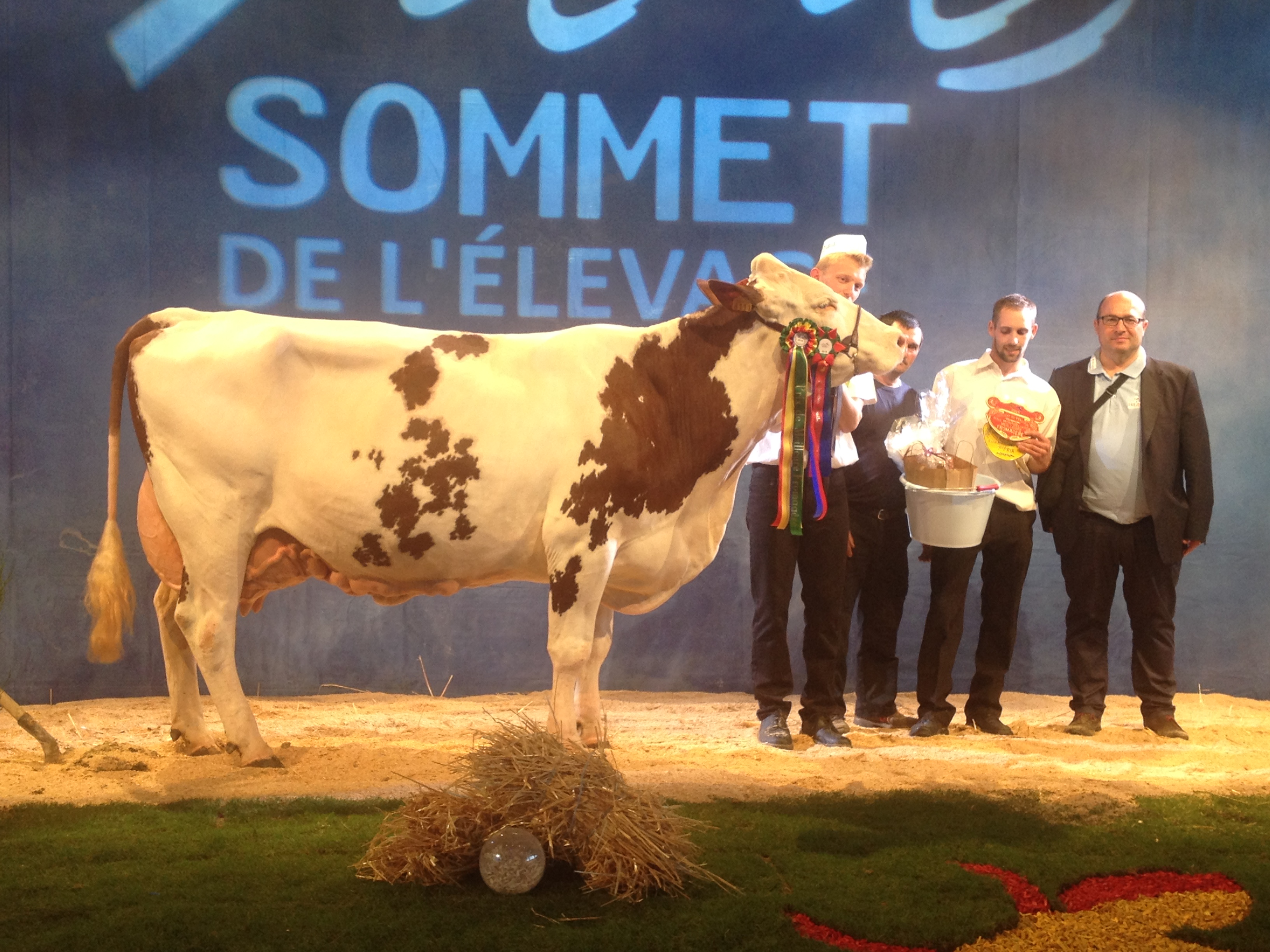 14 sections ont défilé sur l’après midi, ponctuées par les prix de championnats jusqu’à l’élection de la grande championne. L’occasion de retrouver dans les allées quelques-unes de nos mères à taureaux, qui ont des fils actuellement diffusés au catalogue ! Etincelle (Ricochet/ Octet jb) chez Mr Bastide Christian (12) actuellement en 5ème lactation, a produit 40 800 kg en 4 lactations. C’est la mère de Impec (fils de Brink à 153 d’ISU, + 1105 en lait, + 1 repro, 92 nai) disponible en semence conventionnelle. Grace (Varus/Sir) de chez Alain Rouquier (15), est la mère de Labdo, fils de Horatio, disponible dans les profils TP, CO, MA et VB.