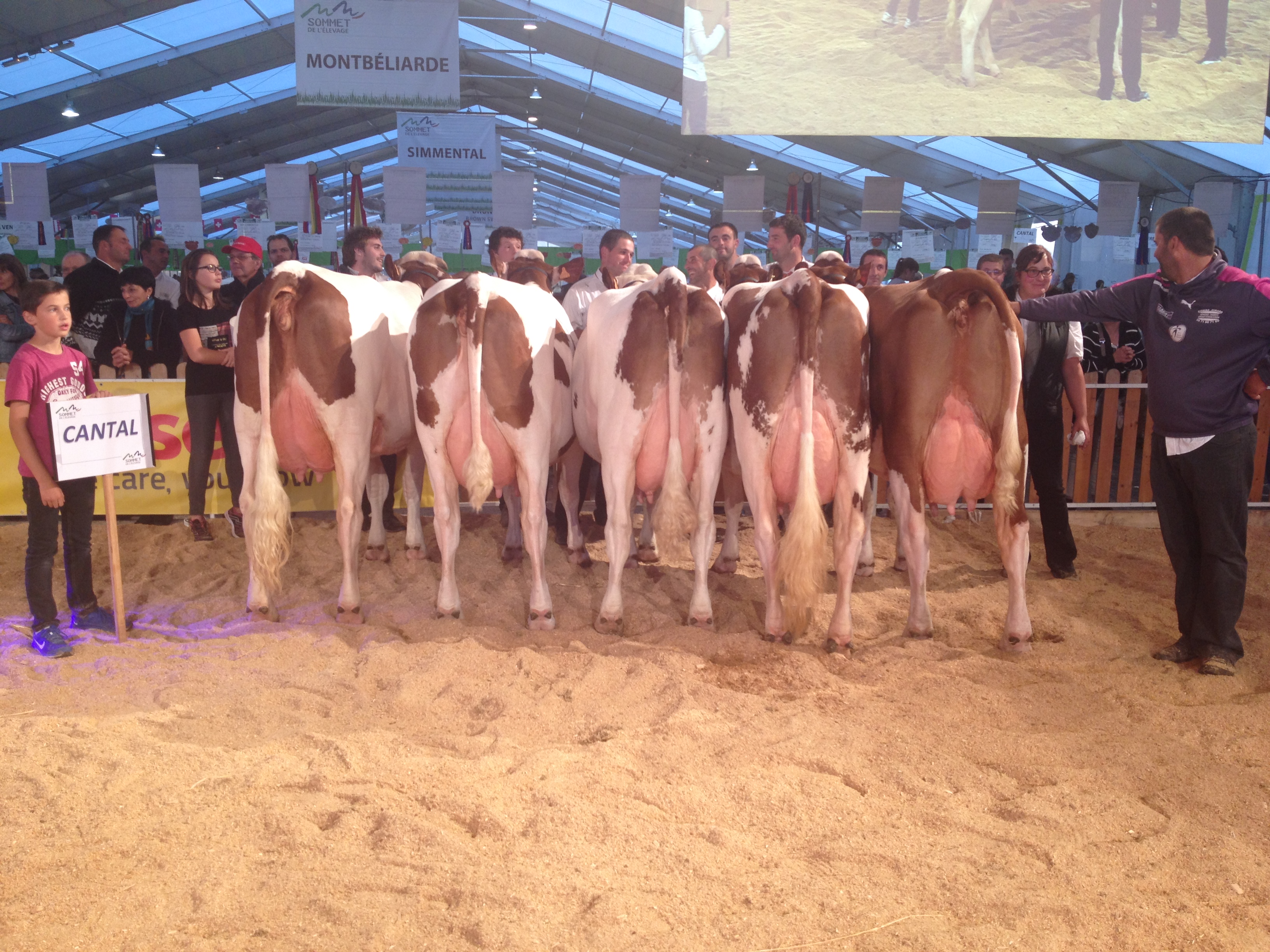 Le mercredi 5 octobre dernier, dans le cadre du Sommet de l’Élevage à Cournon (63), une centaine de Montbéliardes ont été départagées par le juge Laurent Droz-Grey (39). Aveyron, Cantal, Loire, Haute-Loire, Lot, Lozère, Puy de Dôme ainsi que le Rhône ont été représentés. Après une édition de Cournon sans animaux l’an dernier, quel plaisir de voir les stalles du Hall 2 remplies !