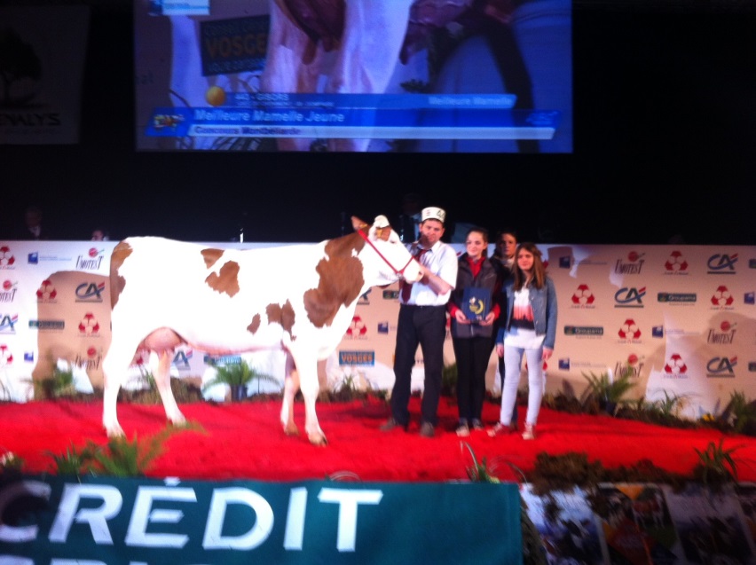Meilleure mamelle Jeune: Gisors (issue d'une souche travaillée dans le schéma Umotest, pleine sœur du taureau Ginastera et demi-sœur d'Henimont) appartenant au Gaec de Chenimont à Dompaire (88)