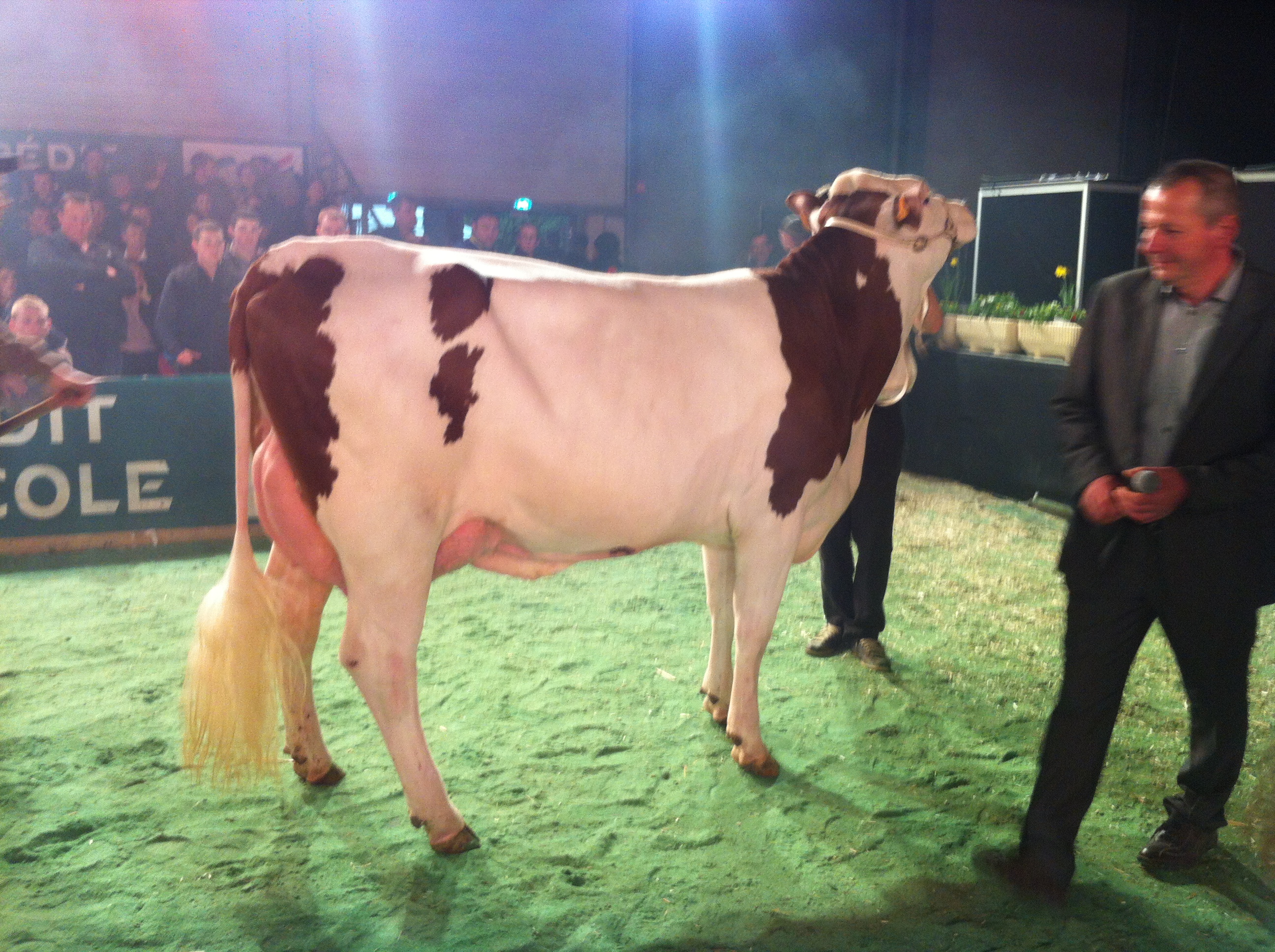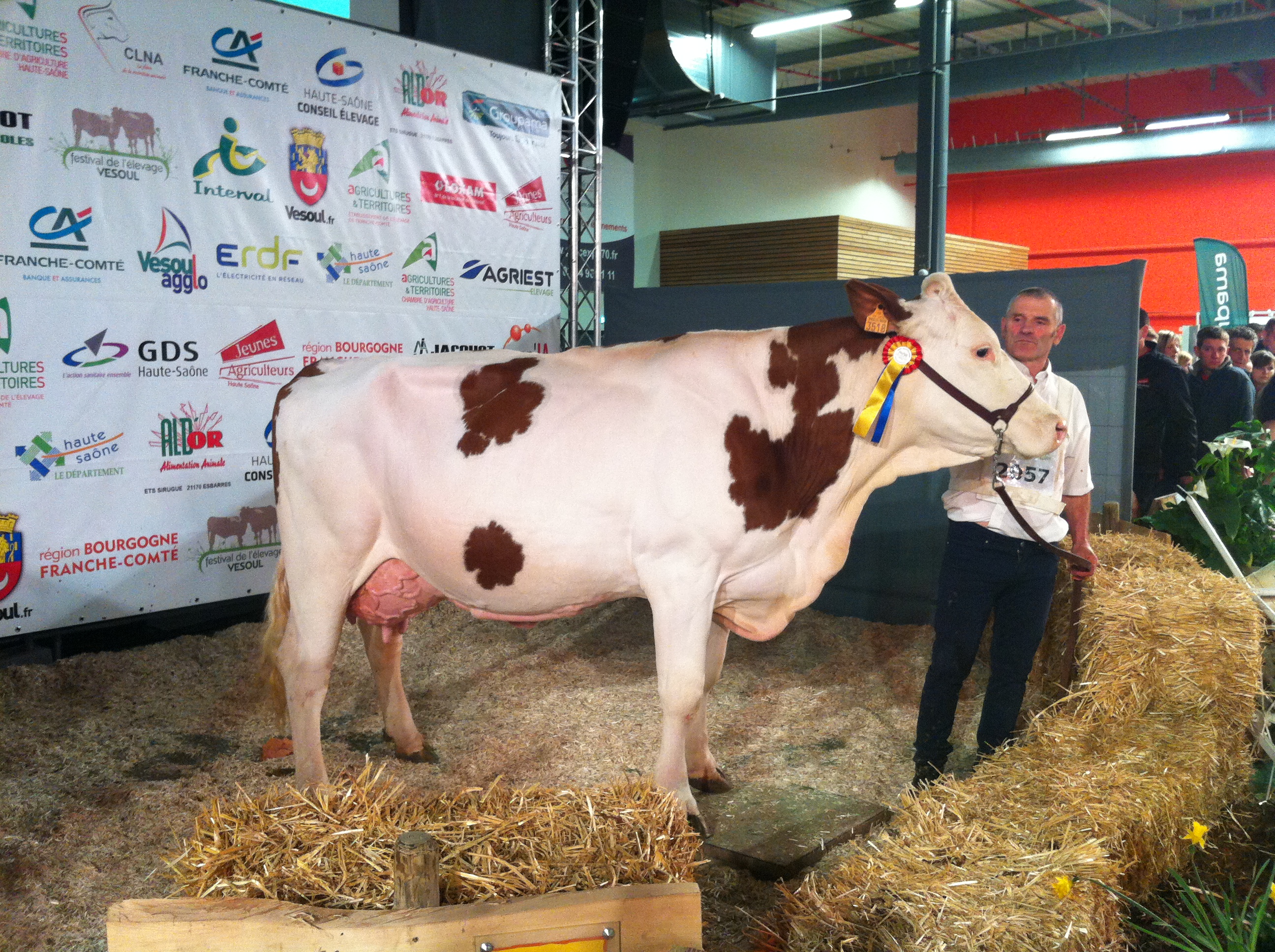 Voltesse (Micmac/Brachy) Gaec Normand, 8e lactation, 63 277 kg de cumul lait. Grande championne Présentation des Centres d’Elevage en 2014, elle a plusieurs podiums à son actif au Montbéliarde Prestige, Eurogénétique et National à Bourg en Bresse en 2011.