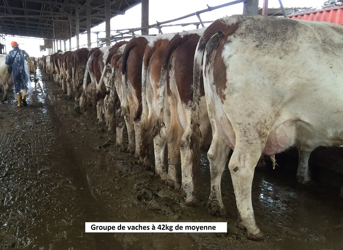 D'après Davide Rossi les montbéliardes sont intéressantes. Elles supportent bien les aléas alimentaires. "Cet hiver nous avons eu des aflatoxines dans les mais et nous avons eu peu de conséquences au regard de la difficulté rencontrée. En Italie, les températures avoisinent parfois les 40° l'été et la montbéliarde est ainsi un véritable atout comparée à la holstein. Enfin il y a une bonne plus–value sur les vaches de réforme valorisées à 900 euros. Notre objectif à moyen terme est d'atteindre les 1000 vaches à la traite. Nous utilisons actuellement beaucoup de doses sexées pour anticiper ce besoin de renouvellement. Pour les retours en chaleurs ou les vaches de moindre qualité nous utilisons du Bleu Blanc Belge qui nous procurent des veaux croisés bien valorisés.
