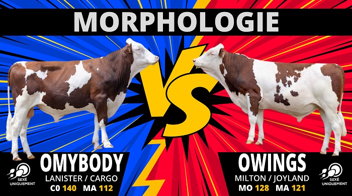 Il y a eu NOLIMIT (MO 130) et NOELCERNEU (129), la relève est belle et bien là avec OMYBODY (130) et OWINGS (128). OMYBODY affiche 140 en corps (n°1 Montbéliard), HALLEZ 120 en bassin, JEREMIAH 127 en aplombs (n°1 racial). Pour la mamelle, OLYMPUS (131) et OBERNAY (128) rejoignent NOLIMIT (137) et NOELCERNEU (134).