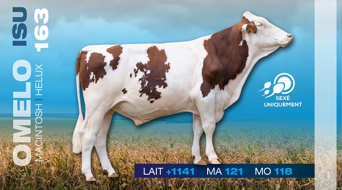n°3 ISU OMELO, ISU 163, seconde nouveauté de cette indexation estivale. +1141 en lait, 118 morphologie, 121 en mamelle avec des très bons blocs arrièrs (117 AH, 125 AL, 111 SU). *