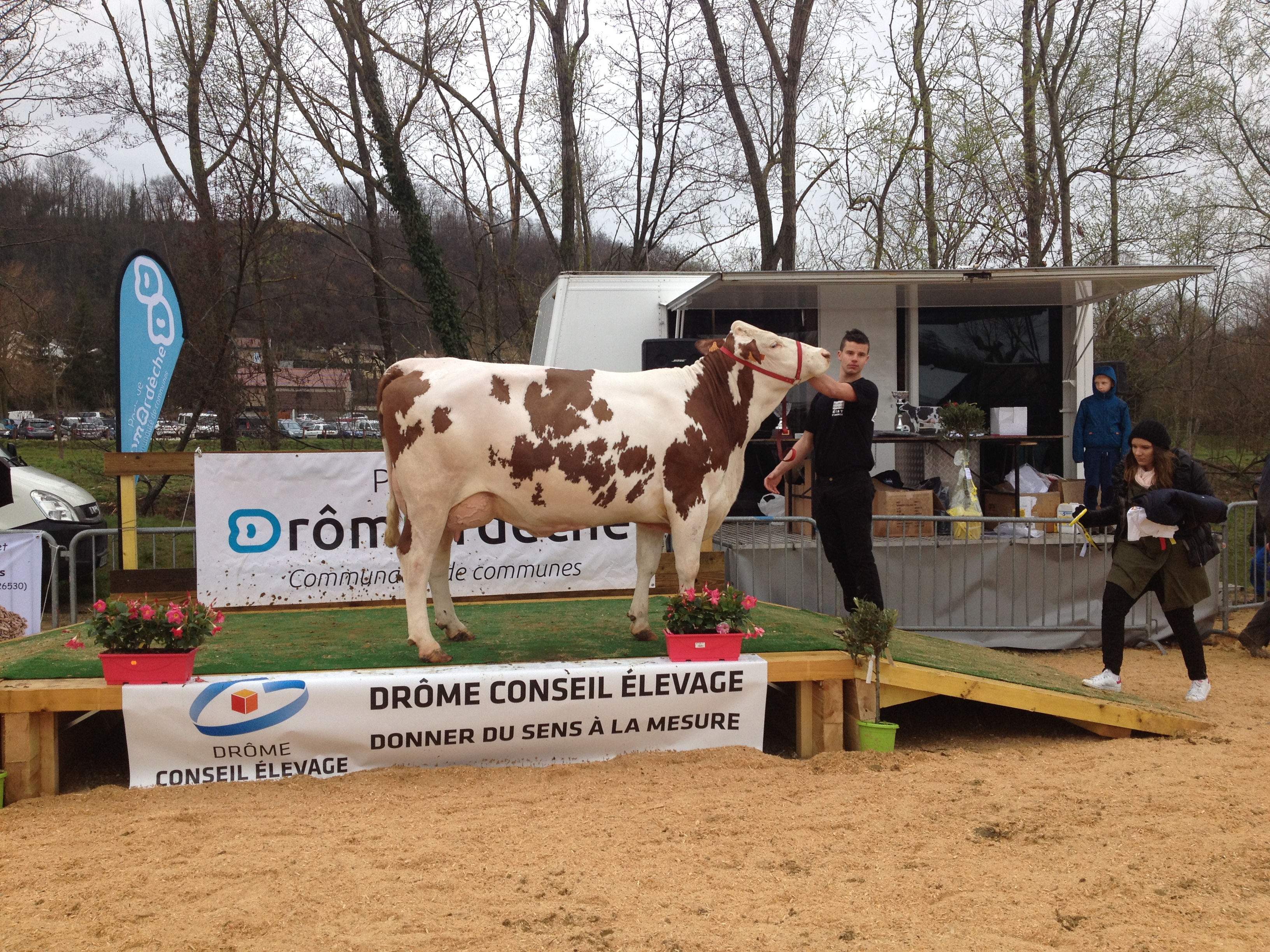La septième édition de l’interdépartemental Drôme/Ardèche/Isère s’est déroulée le lundi 28 mars lors de la Foire d’Hauterives (26). Une cinquantaine de Montbéliardes ont défilé sur la journée, en alternance avec le concours Prim’Holstein, sous le regard du juge Franck Tournier, éleveur au GAEC Tournier à Guyans Vennes (25).