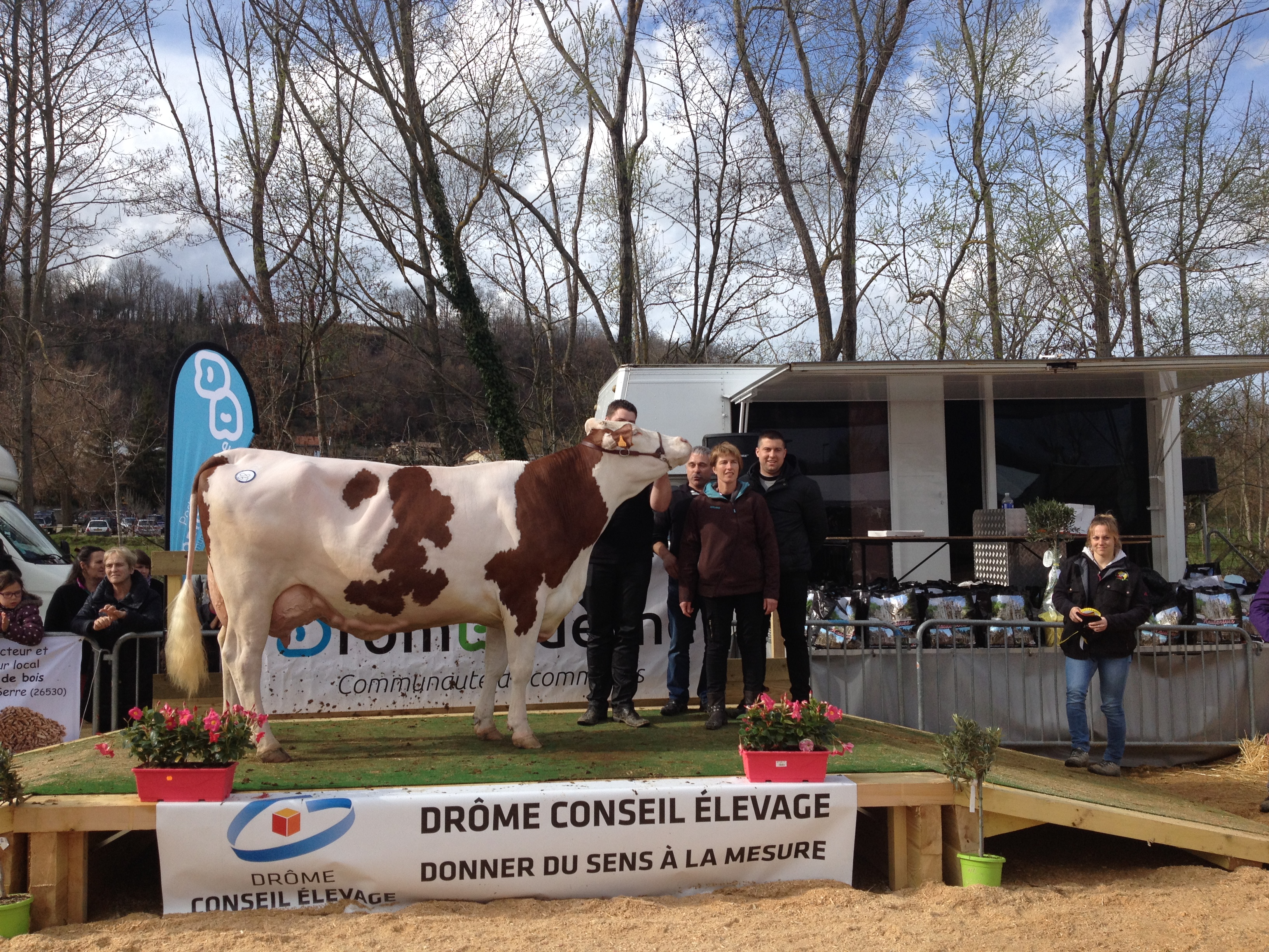 Écriture (Redon/Micmac) appartenant au GAEC de Sarapin à Panissage (38). Après un 1er prix de section au concours général Agricole de Paris le 28 février dernier, Écriture s’arroge le prix de Grande Championne de cet inter départemental. Elle affiche une mamelle impeccable après trois lactations dont les deux dernières à 10 188 kg et 11 720 kg en 305 jours. Sa fille par Harnay a été génotypée et elle présente les mêmes qualités morphologiques dans ses index que sa mère.