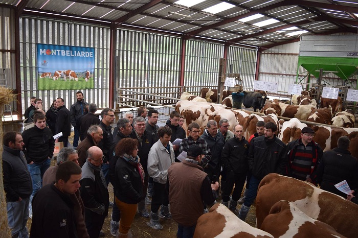 Journée technique sur la zone Elitest. 40 éleveurs ont participé à une matinée d'échanges sur les actualités génétiques, les nouveaux caractères et la gestion de la santé des pieds en élevage. Le Gaec de Bois le Comte à Fréville (88) nous a ensuite reçu, pour une présention du travail de création réalisé dans cet élevage dont 4 femelles ont été travaillées en station de donneuses.