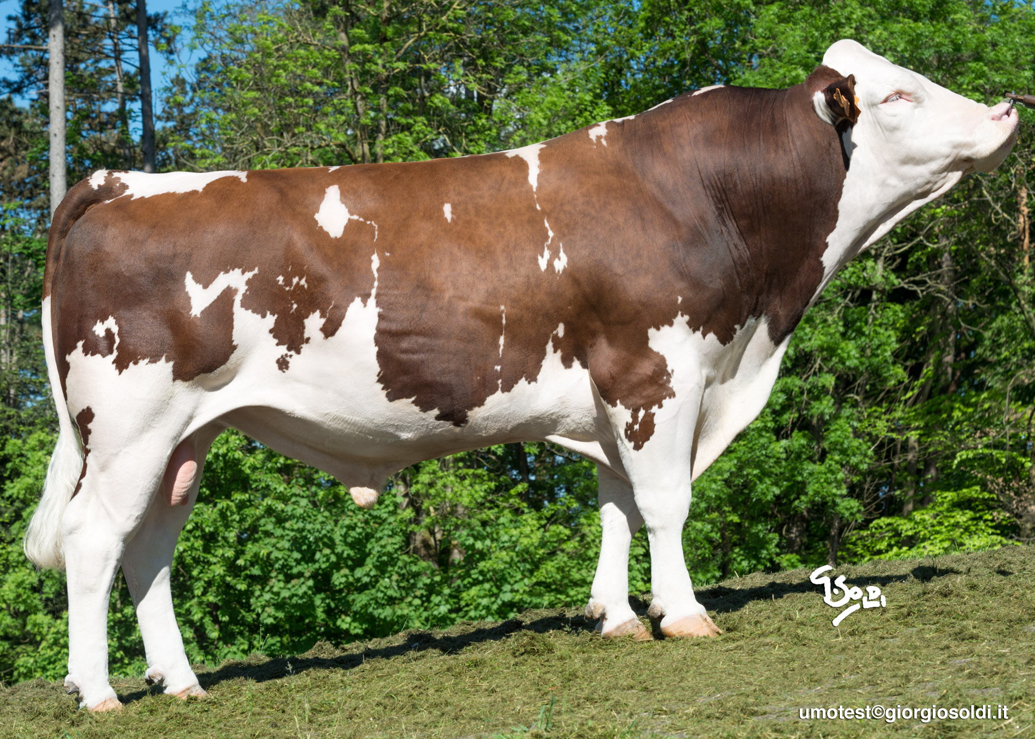 GITANE, pleine sœur de FABLO et tante de GURONZAN affiche aujourd’hui en deuxième lactation un 9ème contrôle à 33,2 kg de lait. Elle atteint les 305 jours de sa 2ème lactation à 10 367 kg et est gestante du taureau ITALIC, pour améliorer la taux et la santé de la mamelle. Pointée à 7 en mamelle, GItane garde ses atouts en deuxième veau. Cette souche issue de chez Mr Yvan PASSETEMPS de Dombrot sur Vair (88) est actuellement au GAEC du Chaud Four à Sandaucourt (88).