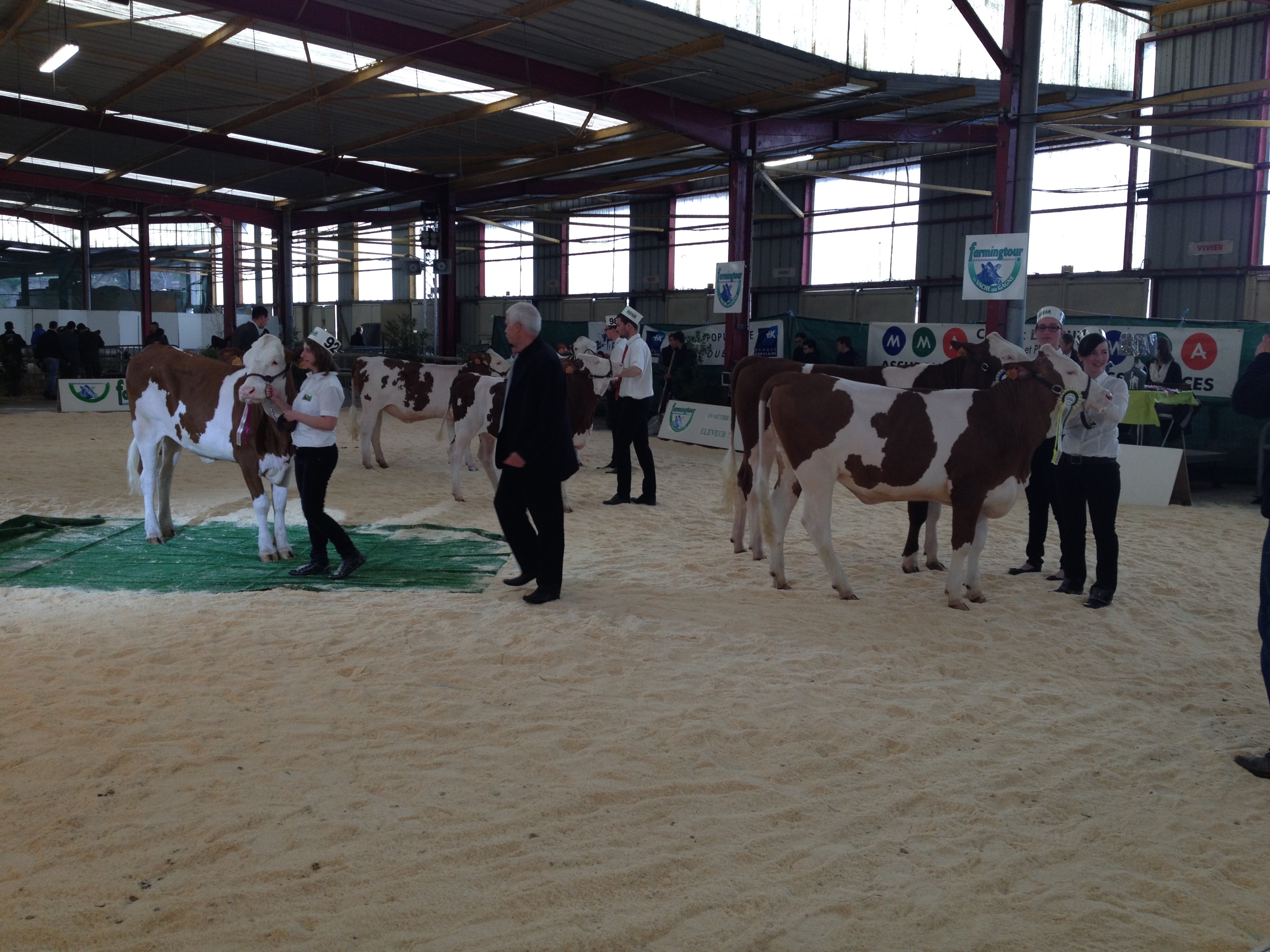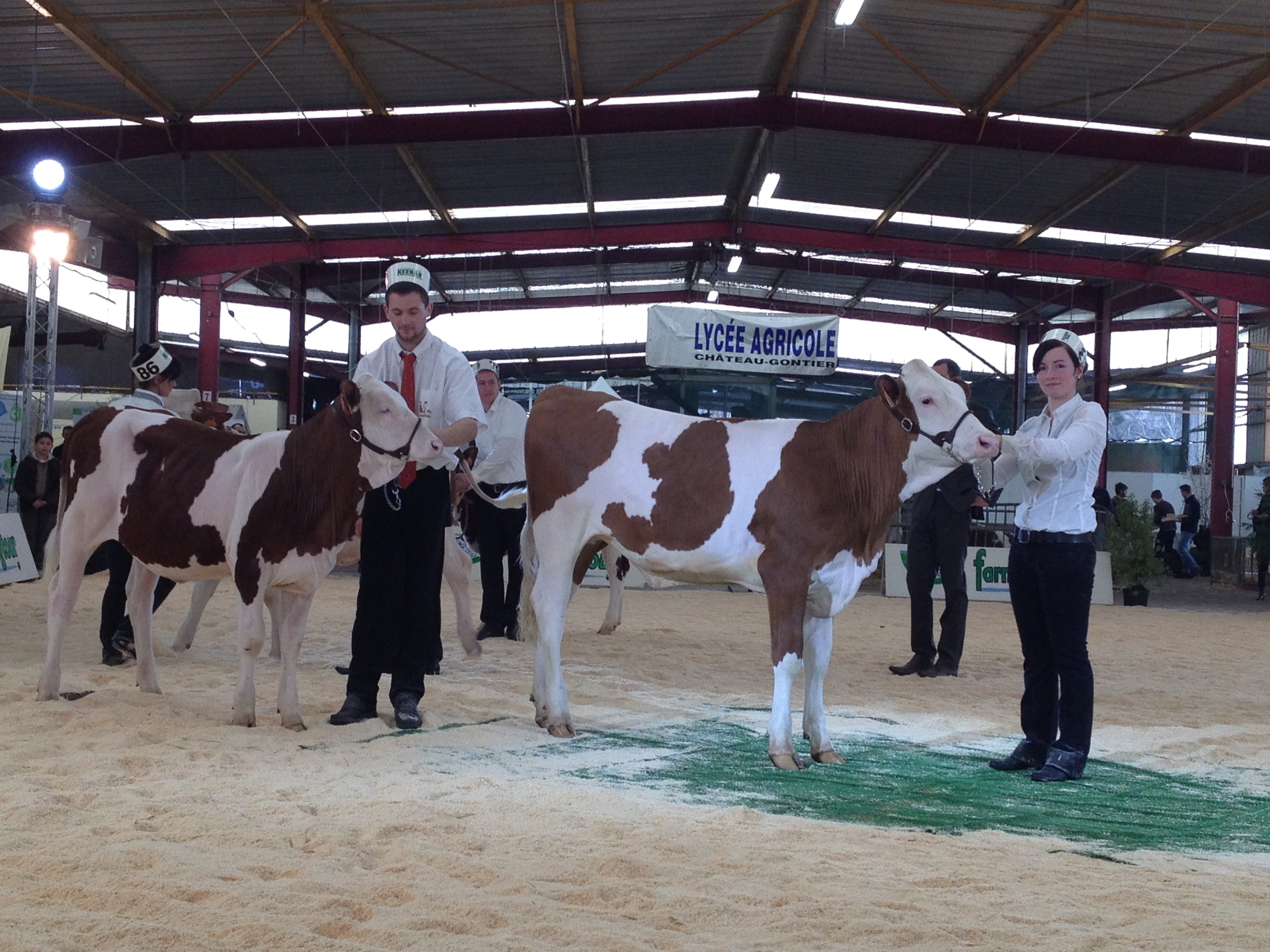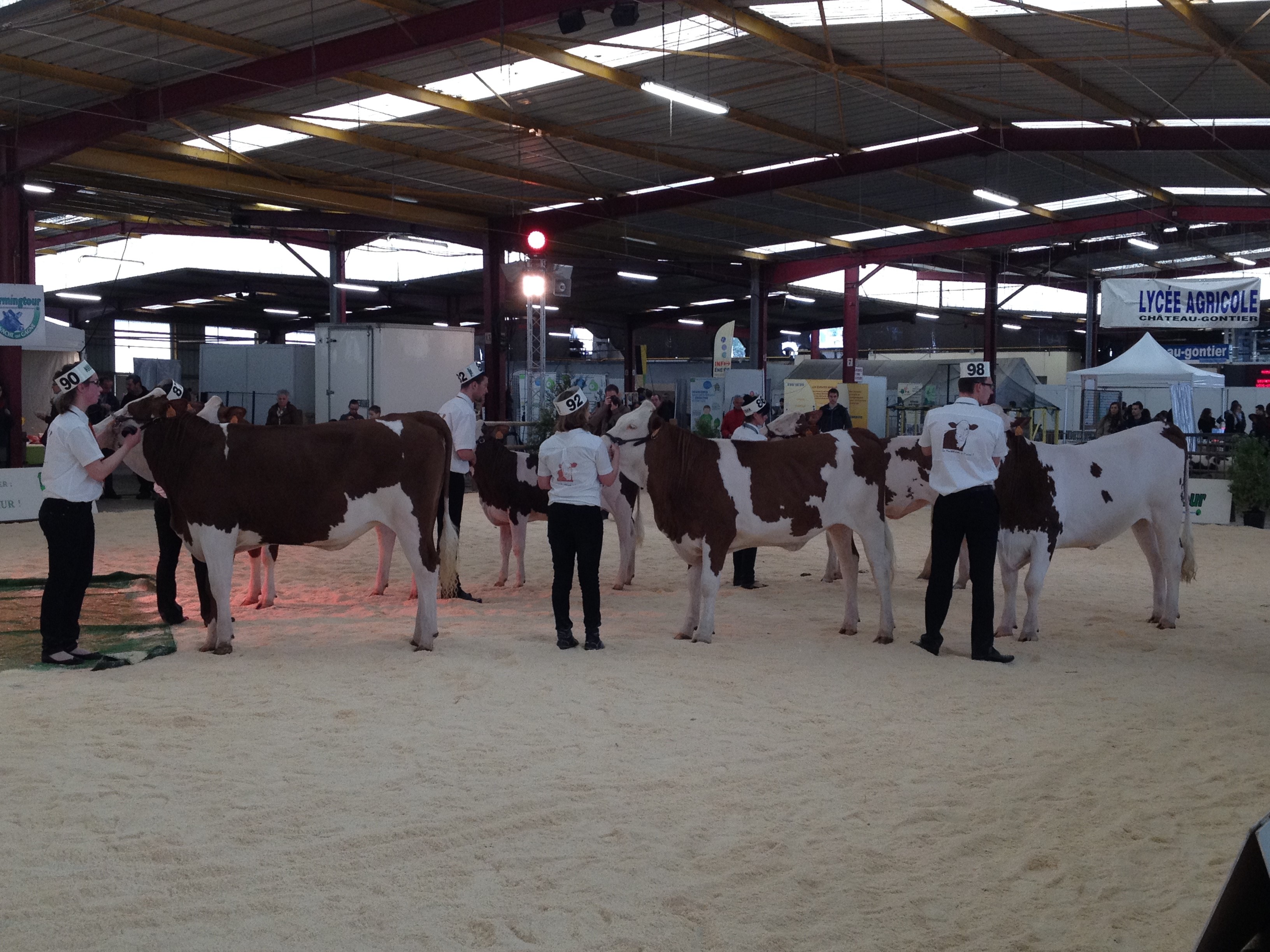 Pour la première fois, des Montbéliardes ont rejoint leurs consœurs Normandes et Prim’Holstein pour concourir à l’Open Show du Printemps des génisses à Château-Gontier. Ce samedi 28 mars 2015 au Parc Saint Fiacre, une vingtaine de génisses Montbéliardes provenant des Côtes d’Armor, de Loire Atlantique, de Mayenne, du Morbihan, de Seine-Maritime et de Vendée ont été départagées par le juge Paul-Antoine Martin, éleveur à Grand Auverné (44).