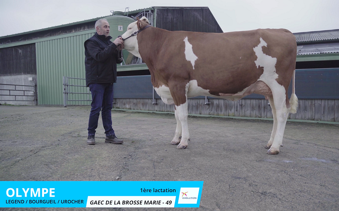 Retrouvez le premier groupe de Montbéliardes présentées par les éleveurs : Ludovic SAILLARD du GAEC du FOURPERET (25) vous présente Osmose, fille de MACINTOSH. On retrouve ensuite Othentique, fille de MAVRICK au GAEC Elevage NEGRON (43), Omelette, fille de MASERATI au GAEC du MONT DU CIEL (25), Odorante mère à taureau, fille de MAYOR chez M. Nicolas JOANNON (69). Et pour finir, découvrez 2 filles de LEGEND, Olympe au GAEC de la BROSSE MARIE (49) et Olga chez Mme ROUQUIER Brigitte dans le Cantal.