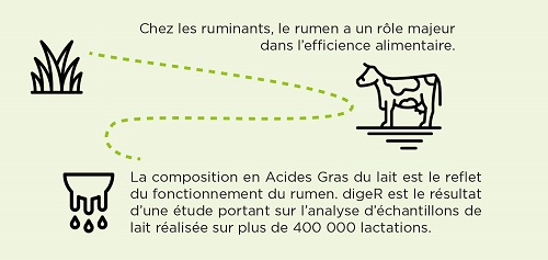 La ration ingérée par la vache est-elle correctement valorisée pour produire un lait de qualité ? digeR donne les indicateurs sur la capacité des animaux à digérer les fibres.